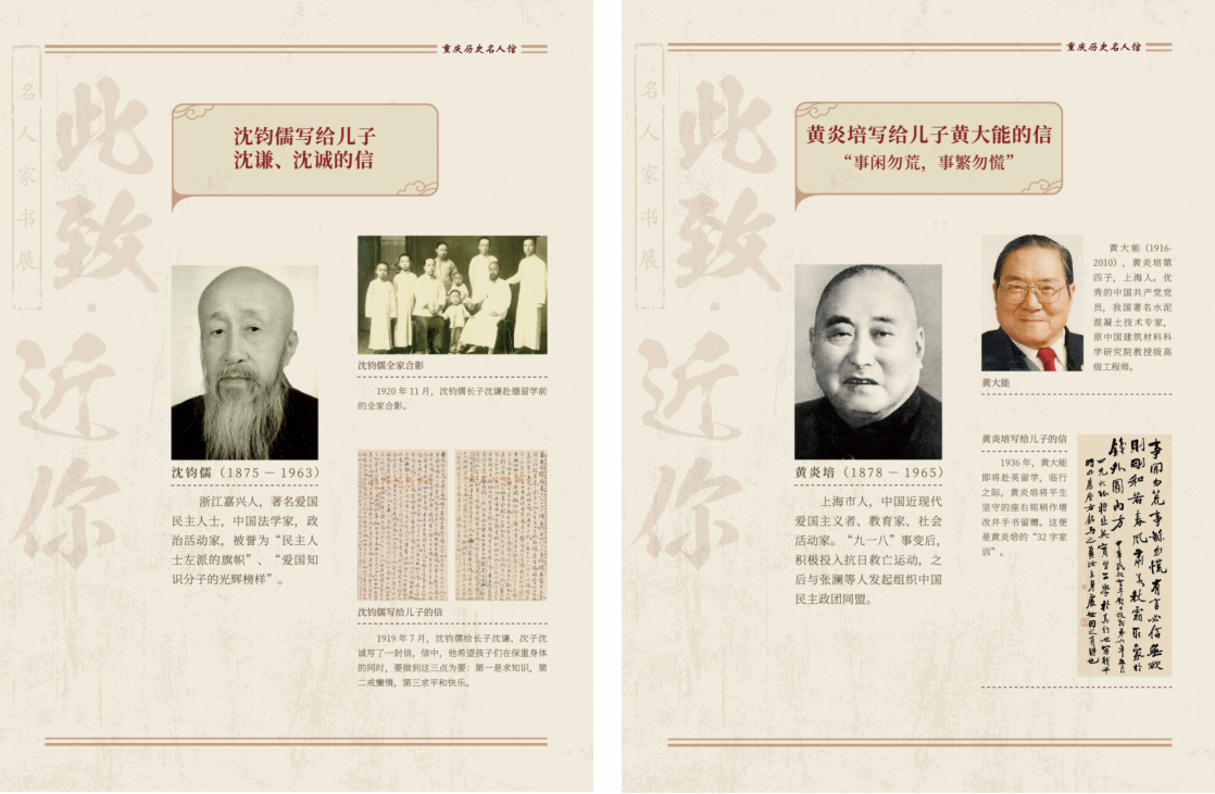 一纸信笺,一声此致,书尽至此,情却近你。党的二十大报告指出:推动家庭家教家风建设。家书是家庭的情感纽带,是家教的重要载体,也是家风的一面镜子。本展览遴选出19位历史名人具有代表性的家书进行展示。这些尘封的家书,是我们学习名人品格风范,特别是进行家庭建设的生动教材,有利于中华民族优秀传统文化的发展与传承,把实现家庭梦融入到民族梦之中,心往一处想,劲往一处使,汇聚起实现第二个百年奋斗目标、实现中华民族伟大复兴中国梦的磅礴力量。