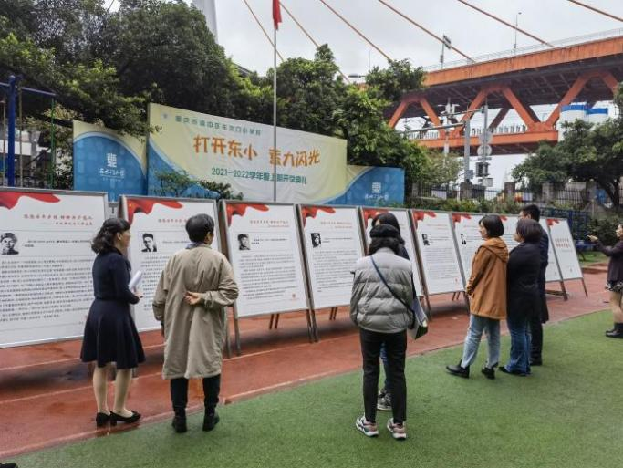 2021.10.15-10.21名人馆在东水门小学举办“悠悠百年岁月 铮铮共产党人——重庆历史名人事迹展”。