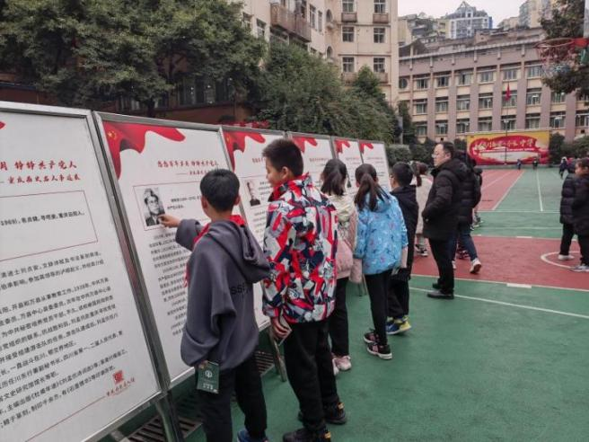 2021.12.15-12.19名人馆在中华路小学举办“悠悠百年岁月 铮铮共产党人——重庆历史名人事迹展”。